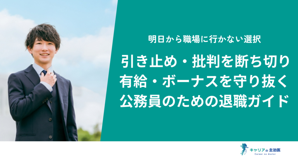 - 公務員には失業給付がない:雇用保険未加入のため、退職後の失業給付はなし。転職先を決めてから退職するか、休職+傷病手当金の活用を検討